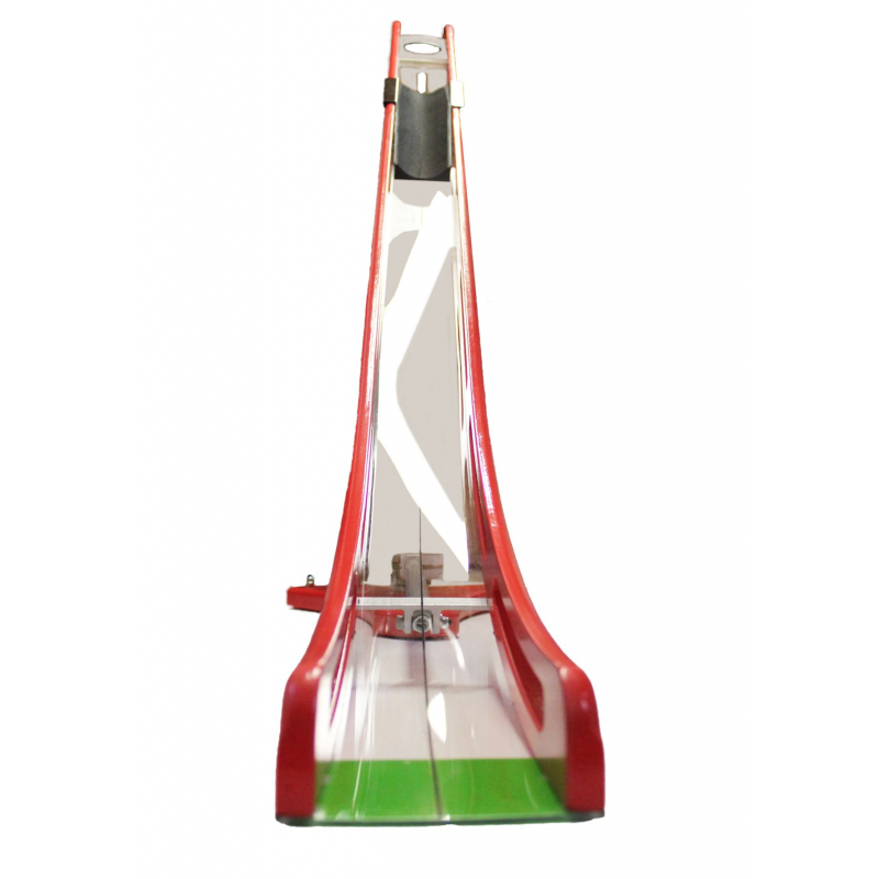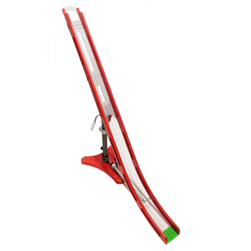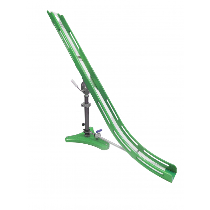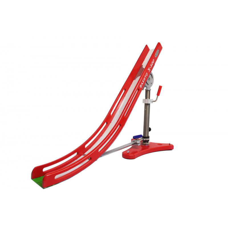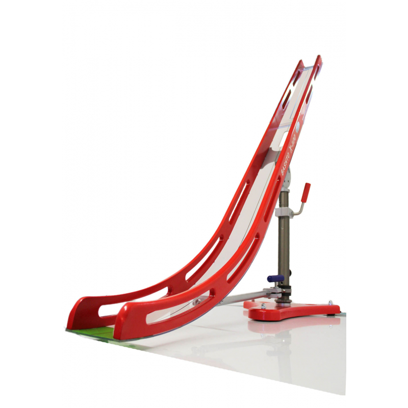 ● Skladá sa zo 7-mich častí. Z tela s tromi nadstavcami rozdielnej dĺžky, nohy, podstavy a pohyblivého držiaka na fixovanie lopty v rampe. ● Bočnice tela rampy a nadstavcov sú vyrobené z bukovej preglejky. ● Nadstavce majú dĺžku 70 cm a 40 cm. Nadstavec na loptu meria 14 cm. ● Dno rampy a nadstavcov je z priesvitného odolného plastu s drážkou. ● Na výber je magnetický, alebo mechanický pohyblivý držiak lopty v rampe. ● Podstava je z bukového masívu na nôžkach s guľovým kĺbom. ● Telo rampy je tu už spevnené stabilizačným ramenom. ● U tejto rampy sa už dá noha teleskopicky predlžovať alebo skracovať. ● Rampa má už 3 ovládacie rúčky. Ovládajú smer do strán, jej sklon a zdvih nohy.